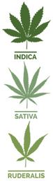 CANNABIS PLANTSIndica leaves are much wider, with the largest leaves having fewer leaflets than the largest sativa leaves, at seven to nine leaflets. Indica leaves are commonly deep olive-green, and the plants are relatively short, conical and densely branched. This is a high THC plant with levels ranging up to 23%. Sativa leaves and plants are long and slender, with pronounced serrations, giving the leaves a jagged, almost spiky appearance. The coloration of sativa leaves ranges from bright, lime green to blackish-green at the darkest. The largest plants can have up to thirteen leaflets. This is a low THC plant with levels ranging between .3% to .4%. Ruderalis leaves and plant is much smaller than the Indica and Sativa, with the largest plants may contain anything from five to thirteen leaflets. This low THC plant is most commonly bred with the Sativa plant for hardiness, while still maintaining the medicinal effects of Sativa plant. |